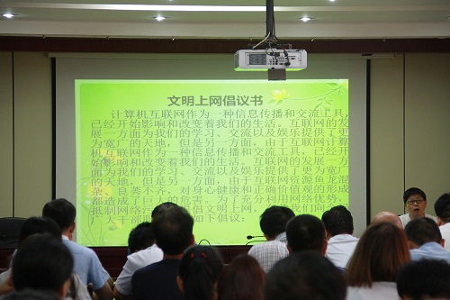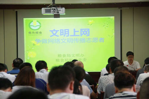 为提高干部职工的文明使用网络素质,营造良好网络环境,倡导文明理性上网、安全上网。7月26日下午,市粮食局组织机关全体干部职工、三个事业单位和焦粮集团全体员工在局机关209会议室开展“文明上网—争做网络文明传播志愿者”主题宣传活动,传播网络文明,共建和谐社会。